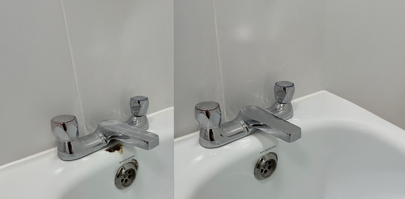 Acrylic and enamel surfaces with chips, star cracks or abrasion are filled with compatible systems, then sanded, primed and refinished. We match colour and gloss so tonality remains consistent around the repair. Heat- and water-resistant coatings deliver a durable, hygienic finish. The process is contained and low disruption, ideal for hotels and occupied homes.