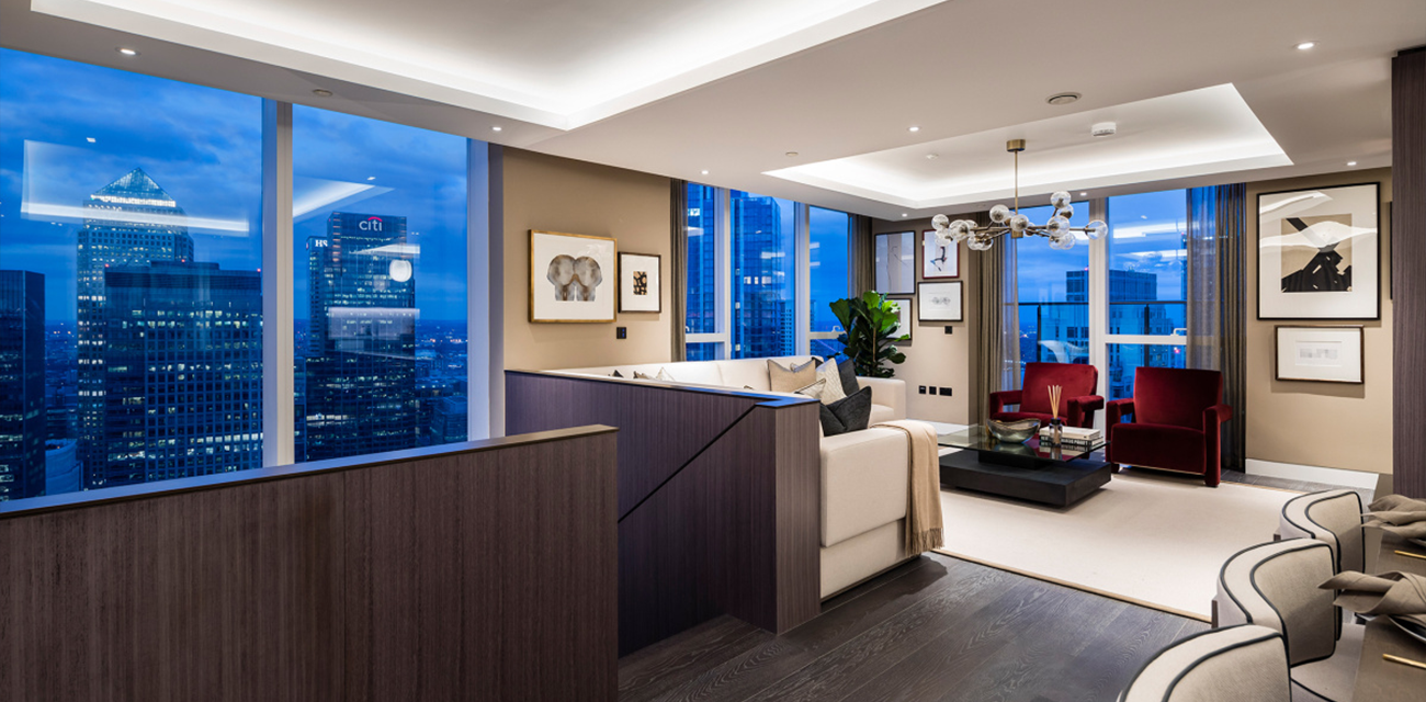 At Harbour Central, NORA Building delivered the full internal painting and decorating package for one of the most prestigious residential projects in London Docklands.