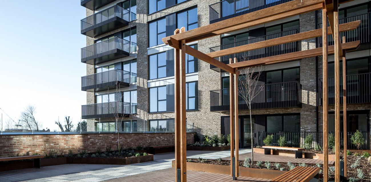 Rome House is a residential development in West Ealing, delivered as Phase 1 of a wider scheme. It consists of three linked buildings from 5 to 12 storeys above a podium level, providing new apartments with private balconies or terraces, shared amenity on the podium deck and a roof garden for residents. A centralised plant system serves all apartments for heating and hot water.